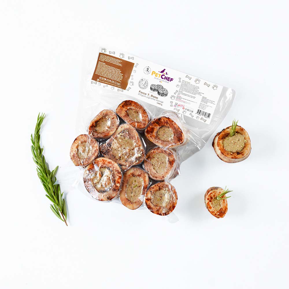 Dana ilikli kaval kemiği Omega 3 Yağ Asitleri ve kalsiyum bakımından yüksek olması ile köpekler için dengeli ve çeşitli beslenmenin önemli bir parçasıdır. Köpeğinizin dişlerini diş fırçasıyla fırçalamıyorsanız, doğal ilik dolgulu kemik ile beslemek harika bir alternatiftir. Dana ilik dolgulu kemikleri çiğnemek, tartar ve plak oluşumunu ağız kokusuna ve bir dizi potansiyel olarak ciddi diş problemlerine neden olabilen plağı kazımaya yardımcı olur. Dana kemiği, temel mineraller olan Magnezyum ve Potasyumun yanı sıra temel Amino Asitlerin doğal bir kaynağıdır. Bütün dolgulu dana ilikli kemikleri Sous Vide tekniği ile 3 saat benmari (buharda pişirme) yöntemiyle ateş görmeden pişirilip farce dolgusu ile doldurulmuştur.