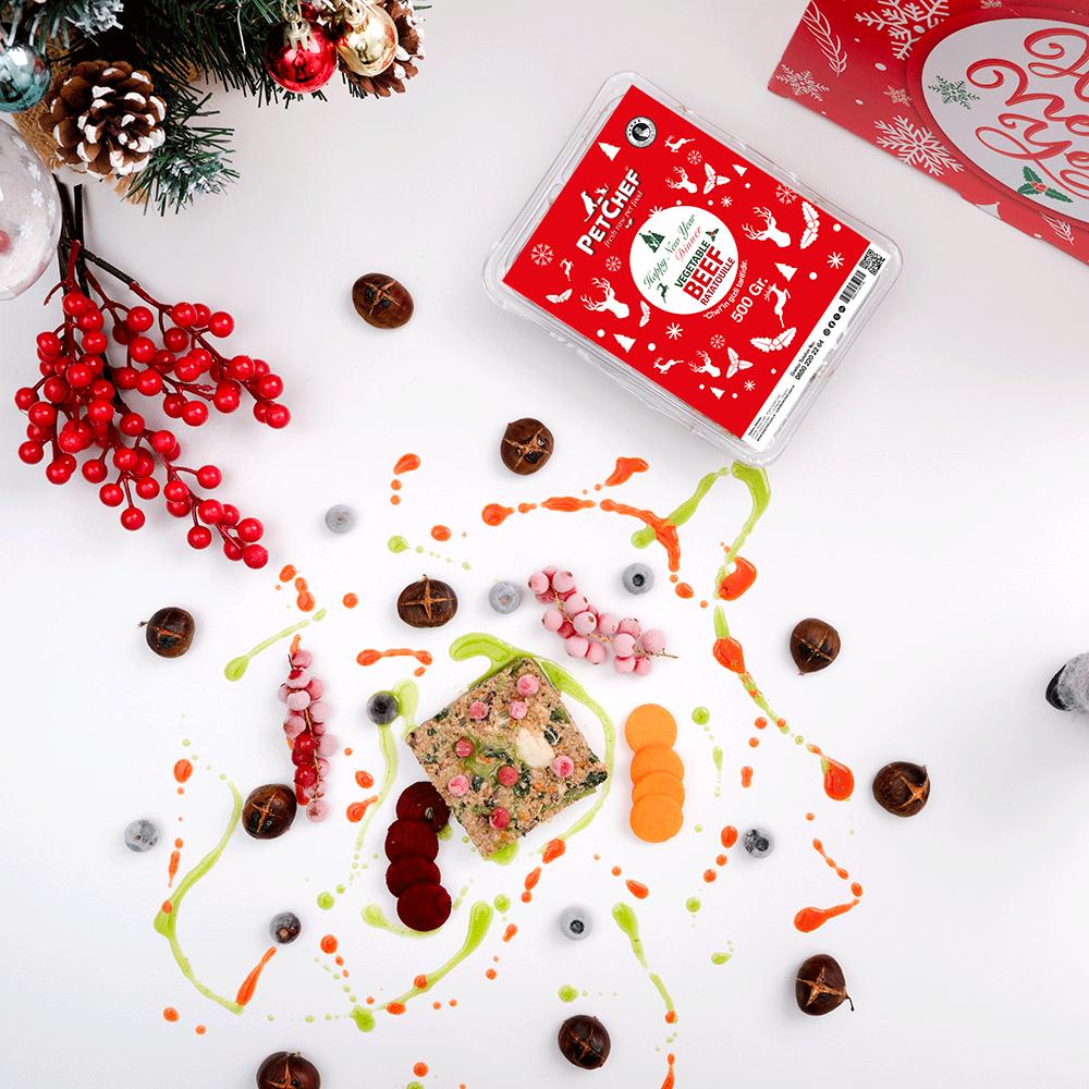 İlk kar usulca yağdığında ve kış dünyayı yumuşak ışıltısıyla büyülediğinde, müzik havayı doldurur. Çaykovski'nin Fındıkkıran'ının narin notaları sıcak odalarda dans ederken, şenlikli yeni yıl menümüz, ailenin bir parçası olan köpeklere duyulan sevgiyle bestelenmiş, uyumlu nüanslarla ortaya çıkar.