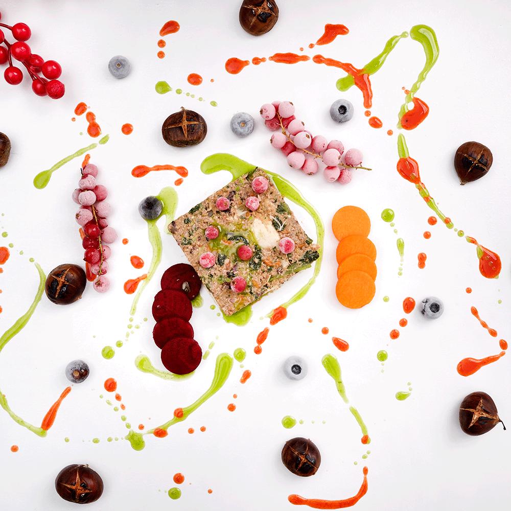 Ördek, eti, Hindi eti,Dana ciğer,Balkabağı, Tatlı patates,Brokoli, Domates püresi,Ispanak ,Maydanoz, Yaban mersini,Nar,Goji bery,Kızılcık,Siyah pirinç,Kestane.